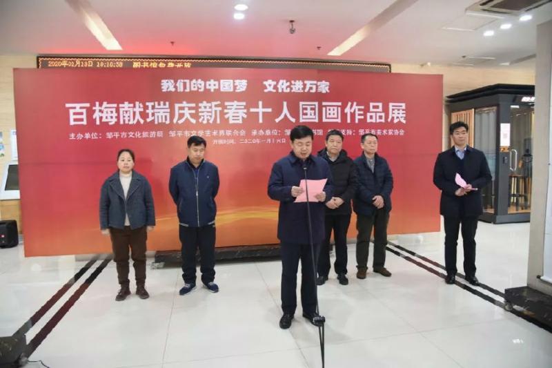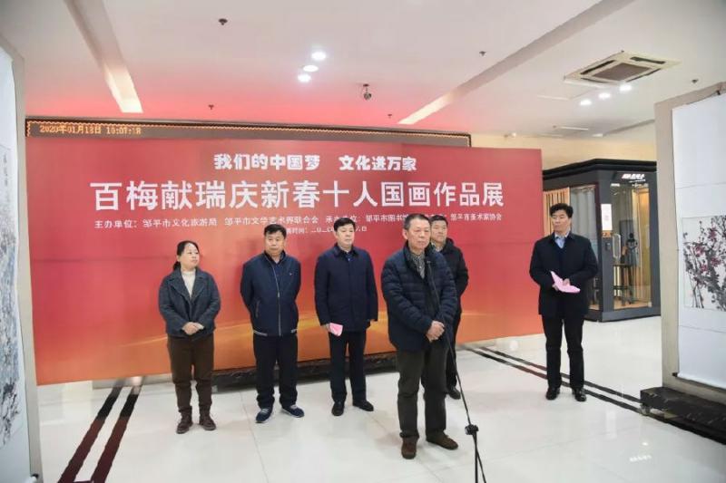 金猪辞岁,子鼠呈祥!值此新春佳节到来之际,由邹平市文化和旅游局、邹平市文学艺术界联合会共同主办,邹平市图书馆承办,邹平市美术协会学术支持的“百梅献瑞迎新春·十人国画作品展”今天在图书馆开幕。