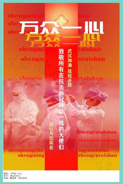 研究馆员郭立民的这几幅作品是他从媒体上了解情况后,心灵受到猛烈撞击构思所作,是他自己作为一名文化工作者的真情表达。让我们万众一心,众志成城,为奋战在抗击疫情第一线的白衣战士祈祷,为中华祈福!