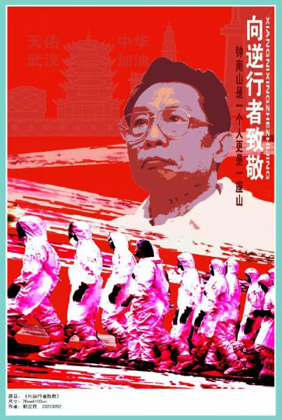 经过反复推敲,他改用宣传画的形式、手法创作,一是为战疫一线的将士鼓与呼,他们不畏生死战斗在疫情一线;二是对非疫区的防控起一点宣传、警示作用,严防死控,扼制蔓延。