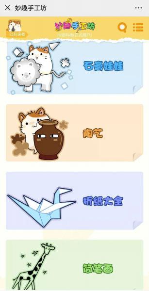 妙趣手工坊,是打造儿童灵巧双手的数据库平台。丰富的手工内容,花样出新的作品,在妙趣横生的手工世界里,引领儿童剪出惟妙惟肖,画出奇思妙想,捏出别致新奇! 还有更多趣味手工等你来挑战,你准备好了吗?