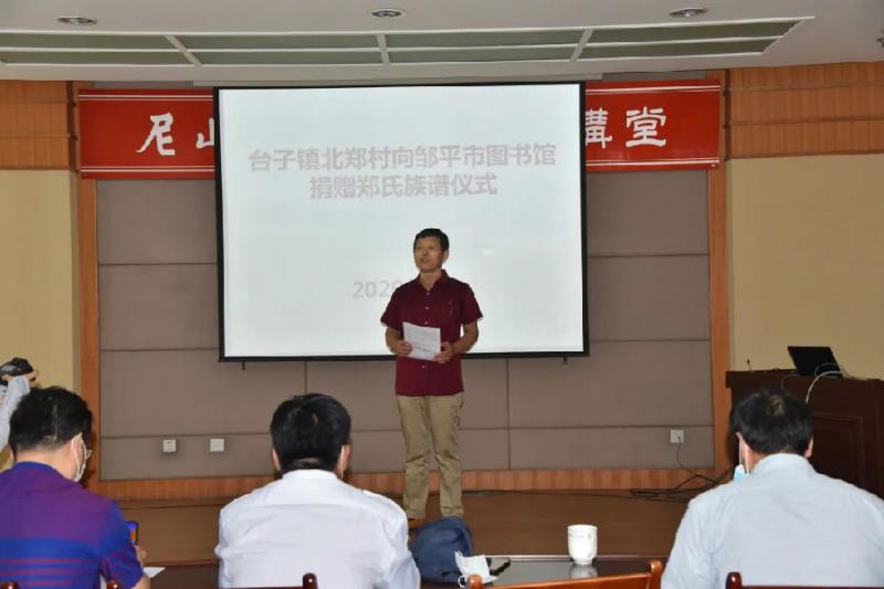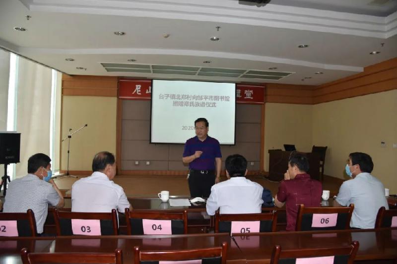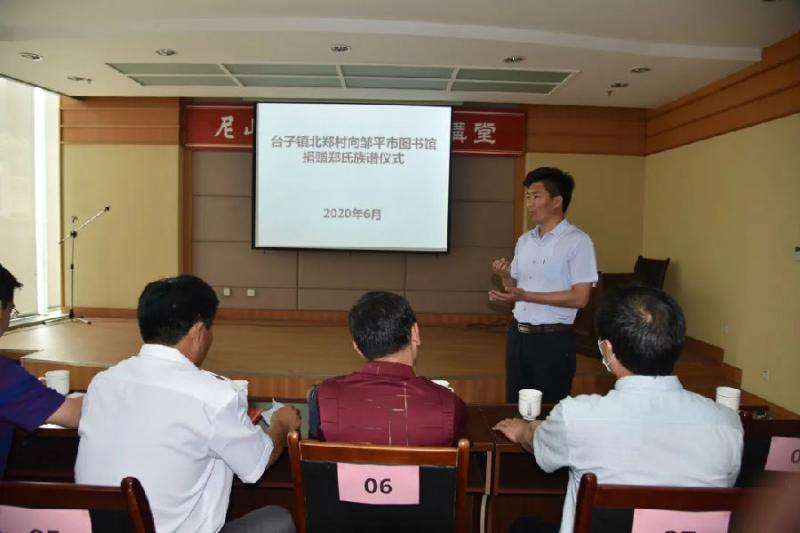 6月10日上午,台子镇郑家村向图书馆捐赠《郑氏族谱》仪式在报告厅举行。本次捐赠仪式图书馆共收到《郑氏族谱》三套,附电子版本两套。主编人员详细介绍了族谱编著的流程、脉络、内容等情况。