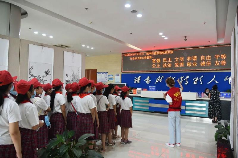 在工作人员的带领下,同学们重点了解和学习了图书馆的主要职责功能、借阅流程,并开展社会主义核心价值观教育实践活动、观看了邹平市道德人物模范展。