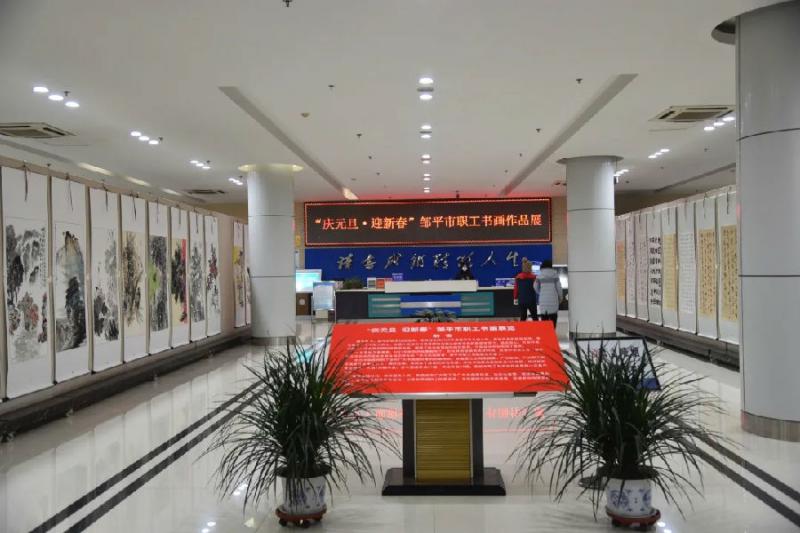 2020年12月29日上午,由邹平市总工会、邹平市文学艺术界联合会主办,邹平市美术家协会、邹平市图书馆承办的“庆元旦·迎新春”邹平市职工书画作品展在图书馆开幕。