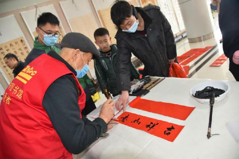 此次活动持续三小时,四位老师身着红色志愿服,热情满满,累计为进馆读者送出福字100个,春联80幅,用笔墨有力助推了图书馆“读者第一·服务至上”的服务理念,拉近了图书馆与广大读者朋友们之间的距离,很好地发挥了文化熏陶与阅读推广引领作用。