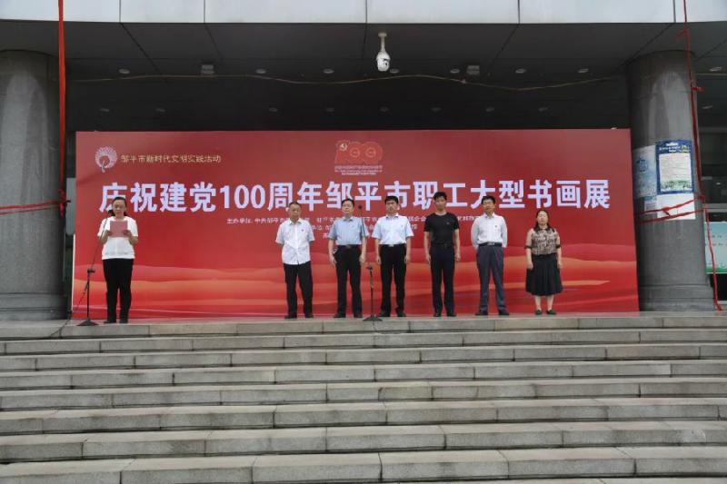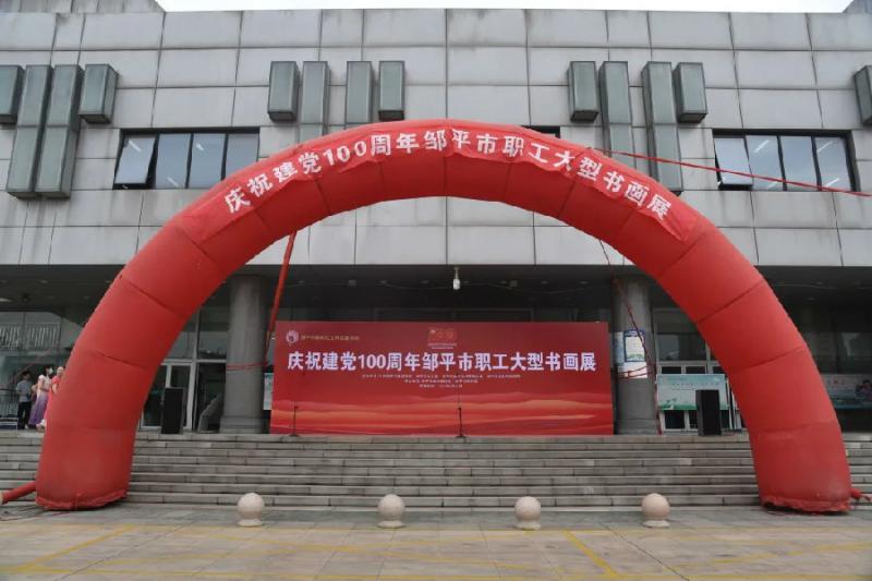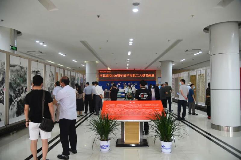 6月25日上午,由邹平市委宣传部、邹平市总工会、邹平市文学艺术界联合会、邹平市文化旅游局联合组织主办,市美术家协会、市图书馆承办的“庆祝建党100周年邹平市职工大型书画展”在图书馆开幕。