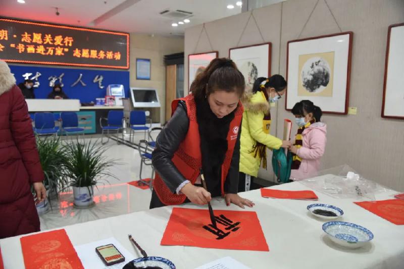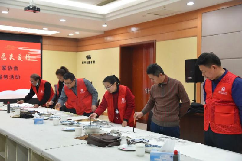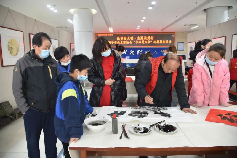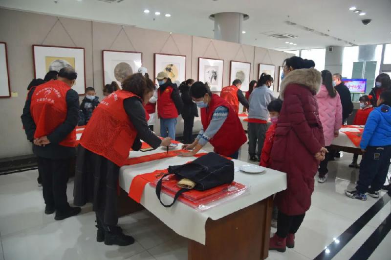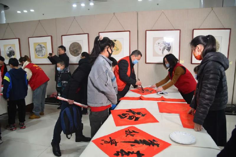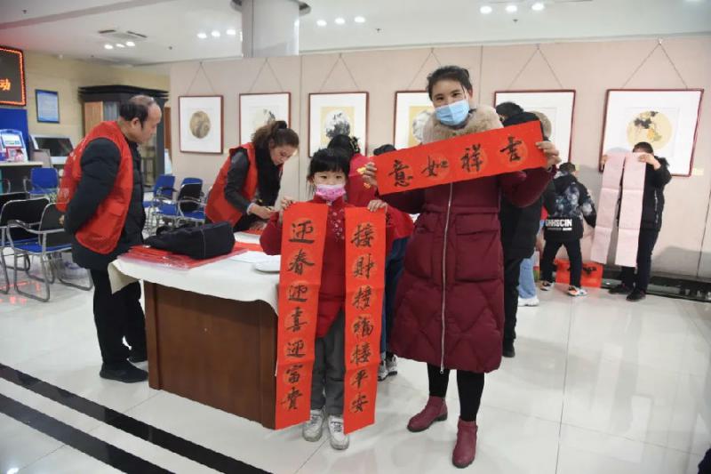 活动首先举行了小型座谈会,会上大家就文艺志愿服务活动发表了看法和建议,随即向现场读者赠送了精美国画台历、书画作品和春联。活动共计为读者书写春联200余幅,“福”字80余个,书画作品30余幅。