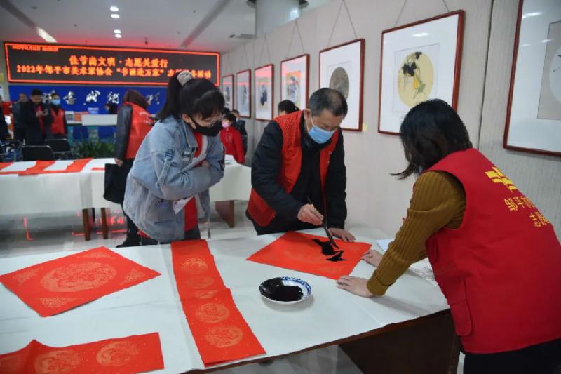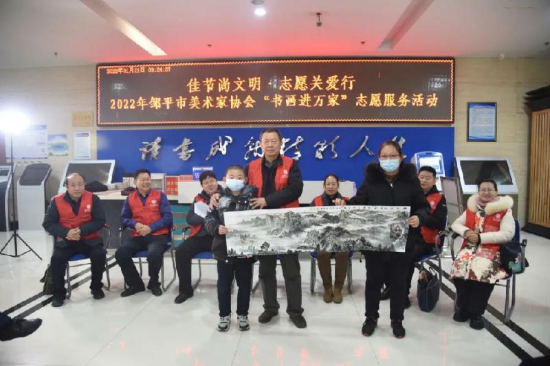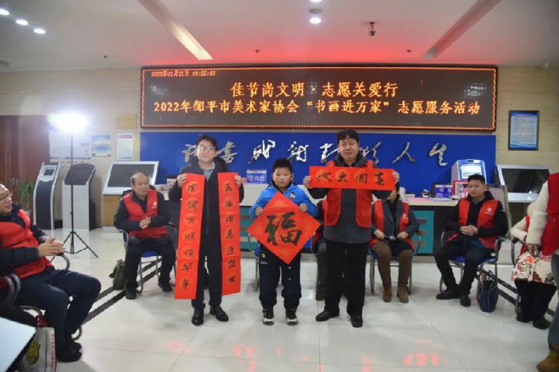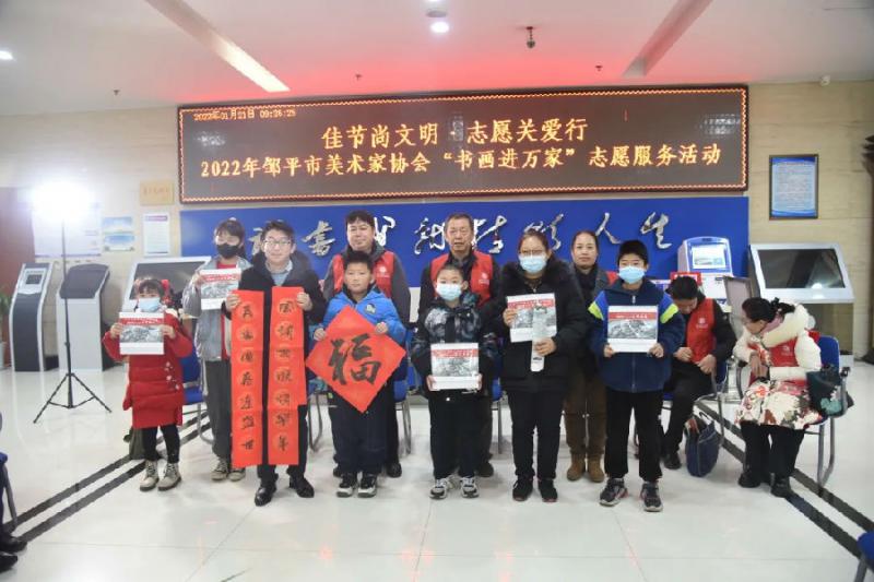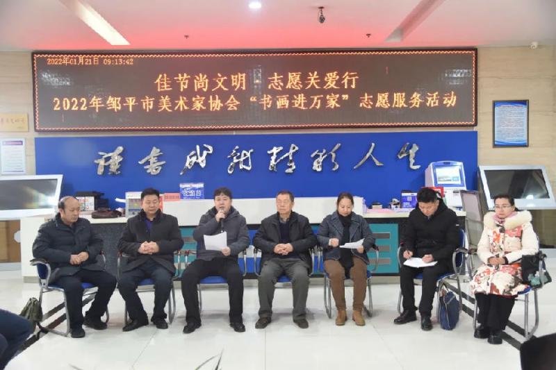 1月21日上午9点,“佳节尚文明·志愿关爱行”邹平市美术家协会走进图书馆开展“书画进万家”志愿服务活动。市委宣传部副部长、文联主席张光华同志出席活动。