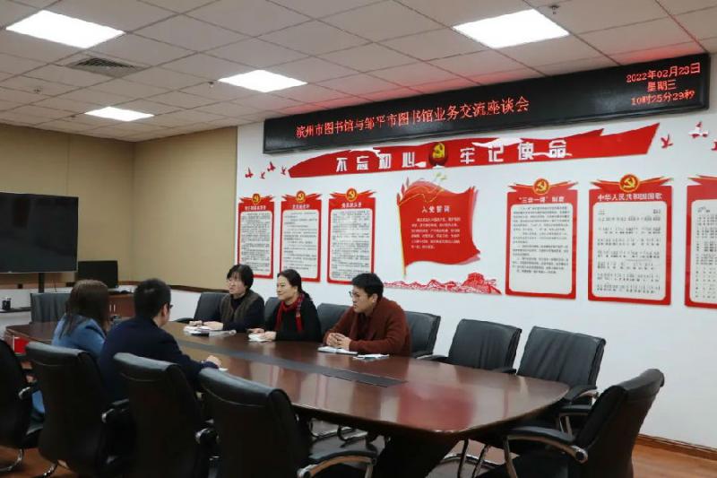 为进一步增进馆际之间的深度沟通和交流,学习先进的服务理念,2022年2月23日上午,馆长宋海蓉一行到滨州市图书馆开展主题为“沟通与分享,创新与进步”的业务交流座谈会,会议由滨州市图书馆刘丽华副馆长主持,馆内业务骨干参会。