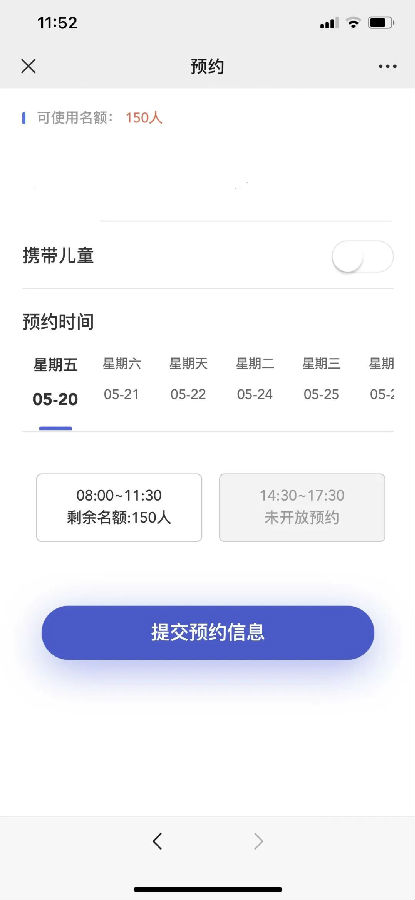 填写个人信息、点击“预约”,选择时间场次、点击“提交预约信息”完成预约。(预约平台提前24小时开放)