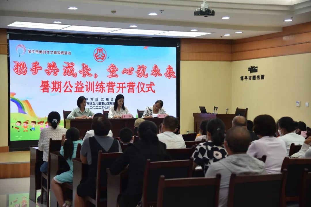 7月8日下午,邹平市妇女联合会“携手共成长,童心筑未来”暑期公益训练营开营仪式在图书馆举办。开营仪式后,家长和孩子们一起参观了“喜迎二十大 家和万事兴”齐鲁好家风主题展。