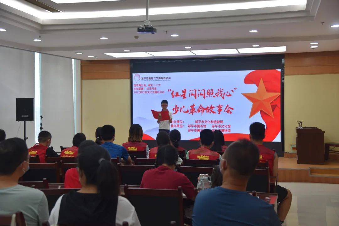 为弘扬红色文化,追寻红星照耀下的革命道路,探索烽火硝烟中的精神脊梁,传承永不褪色的红色基因,7月19日上午,邹平市图书馆、文化馆、美术馆和博物馆联合举办的“红星闪闪照我心”少儿革命故事会在图书馆报告厅举办。