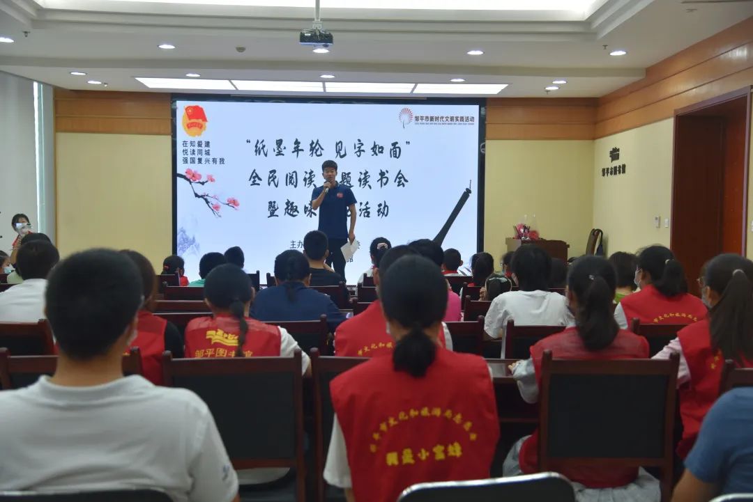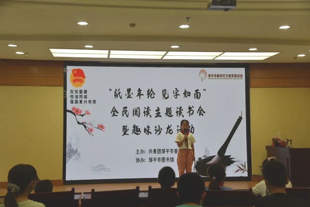 8月11日上午,为引导和激励广大青少年养成爱读书、善读书、读好书的良好习惯,为全国文明城市建设注入新活力,由邹平团市委主办、邹平市图书馆协办的“纸墨年轮 见字如面”全民阅读主题读书会暨趣味沙龙活动在图书馆报告厅举办。