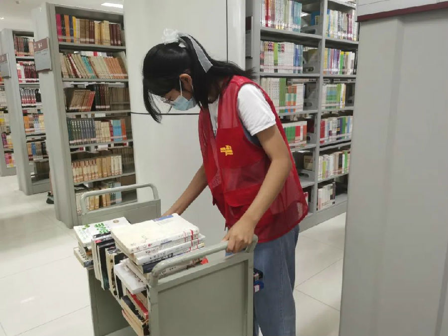 每期的志愿服务活动都由志愿服务活动小组专人对志愿者们进行集中岗前培训,普及图书馆基本概况、科室功能设置,与大家一起学习图书分类法、图书检索、排架、电子设备使用以及疫情形势下图书馆防控措施、重难点等。志愿服务活动中志愿者们身着红马甲,协助工作人员完成图书整理上架,帮助读者查找借还图书,为读者提供服务。