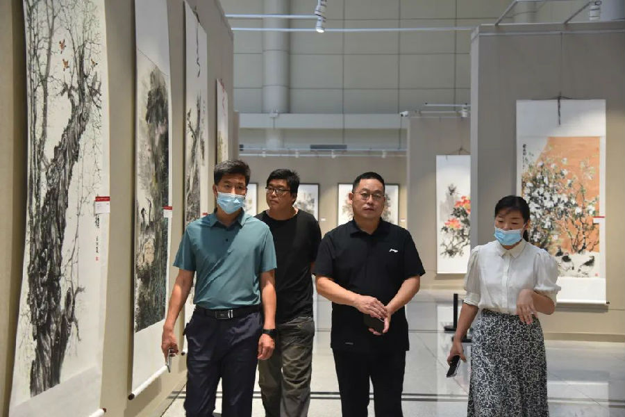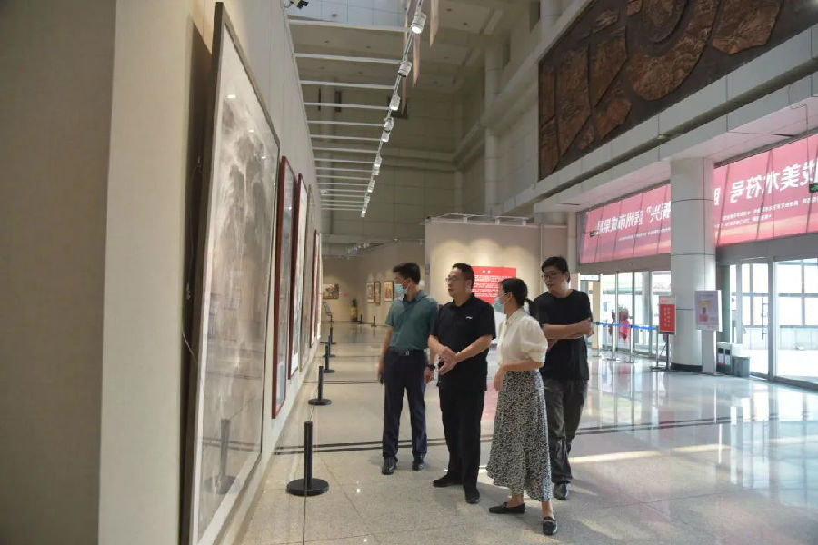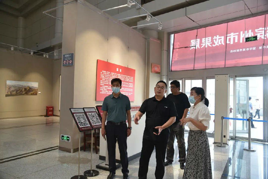 在美术馆,实地查看了美术馆的空间布局,观看了正在展出书画作品展。