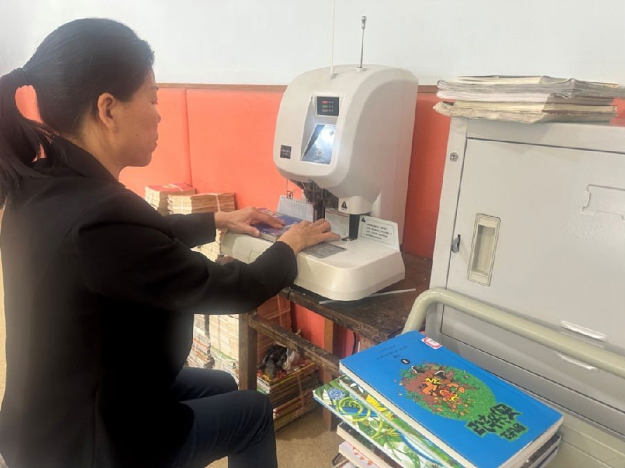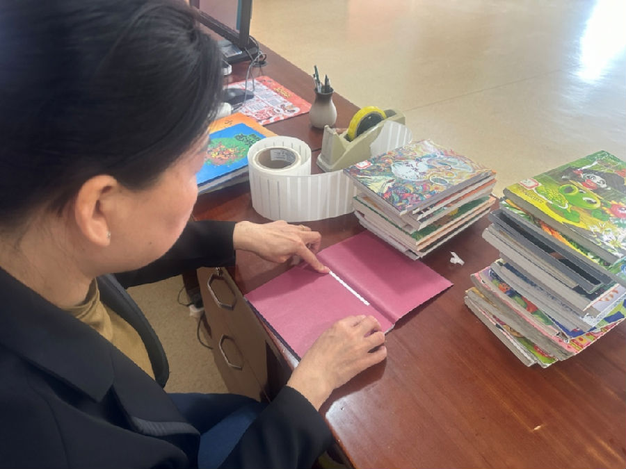 对破损的图书进行修复,相比其他科室,少儿阅览中心图书破损率略高,这与小读者们爱动的天性和好奇心有很大关系。小剪刀、透明胶带、订书机、图书签、活页纸、装订机……各类“修补小工具”应有尽有,所谓工欲善其事必先利其器,有了小工具的辅助,加之“持续性的修补练习”,一套修补流程下来简直完美又顺畅:展平图书边沿、胶带初步固定、活页纸加固、标签重塑、扫码重入系统,装订机“硬装”, 随着最后一道消毒程序的结束,一本本破损图书将再次回归书架,走入小读者们的心中……