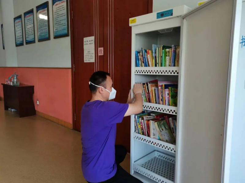 音乐响起,中心管理员将今天还回的图书进行消杀,清理场馆,找一找有没有淘气的孩子躲在书架后面,提醒小读者们离开要带好自己物品。最后完成安全巡检,消除隐患。