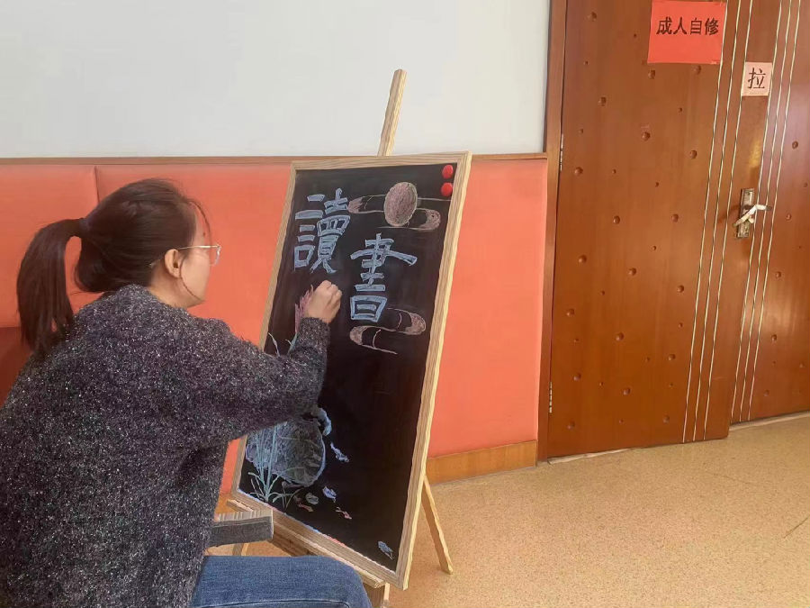 管理员对中心的小黑板进行“重塑”,拿出看家本领,化身板报小专员,对中心的新书、好书进行针对性推荐。