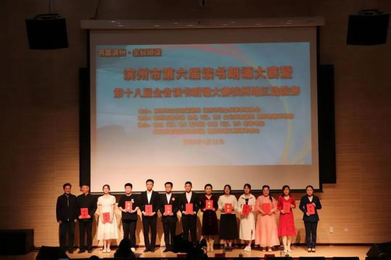 经过紧张激烈的角逐,经现场评委公开、公正的评比,共评选出一等奖6组,二等奖9组,三等奖15组。其中比赛成绩的前三组选手将代表滨州市参加第十八届全省读书朗诵大赛。