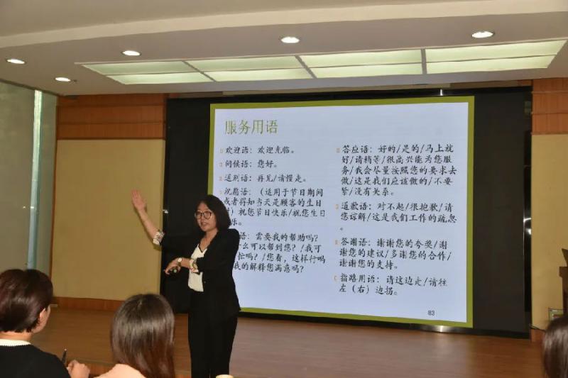 培训中,张老师采用ppt的形式,结合文旅系统工作性质,以专业的知识、生动的语言、鲜活的事例,从服务礼仪概述、个人形象礼仪、服务流程礼仪等方面,从迎接、引导、语言、着装、送别、微笑服务等内容进行了全方位的礼仪知识讲解,为文旅系统工作人员带来一堂干货满满的礼仪课。