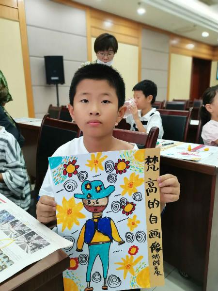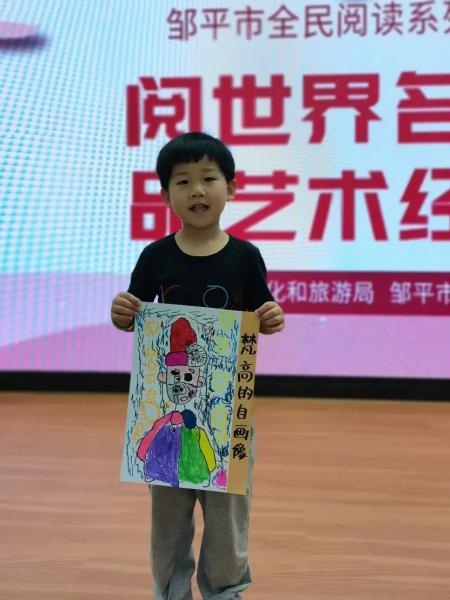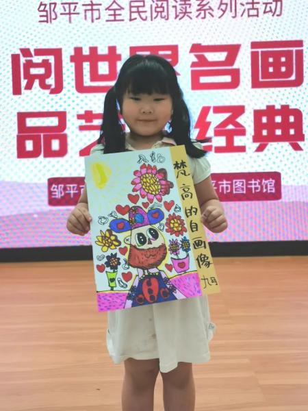 6月11日,邹平市图书馆举办公益美术课堂《走进世界名画——梵高自画像》,15组家庭参与活动。