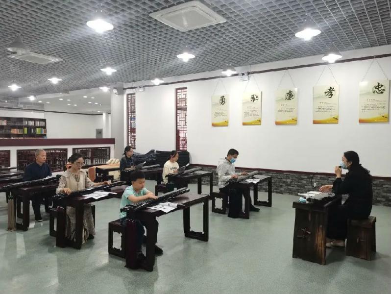 7、学员练习古琴小曲《子夜吴歌》,老师逐一指导,熟练后可尝试齐奏或单独展示。