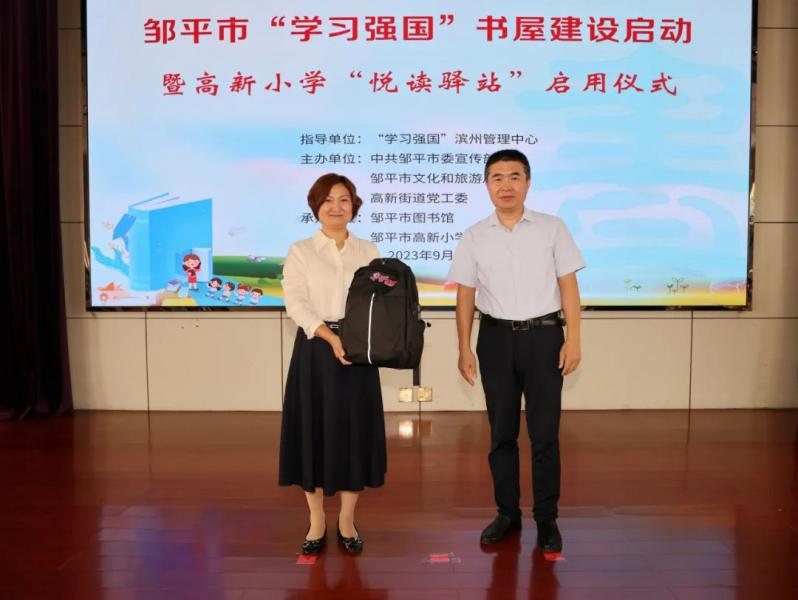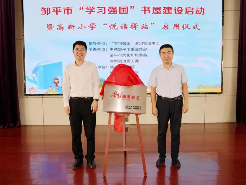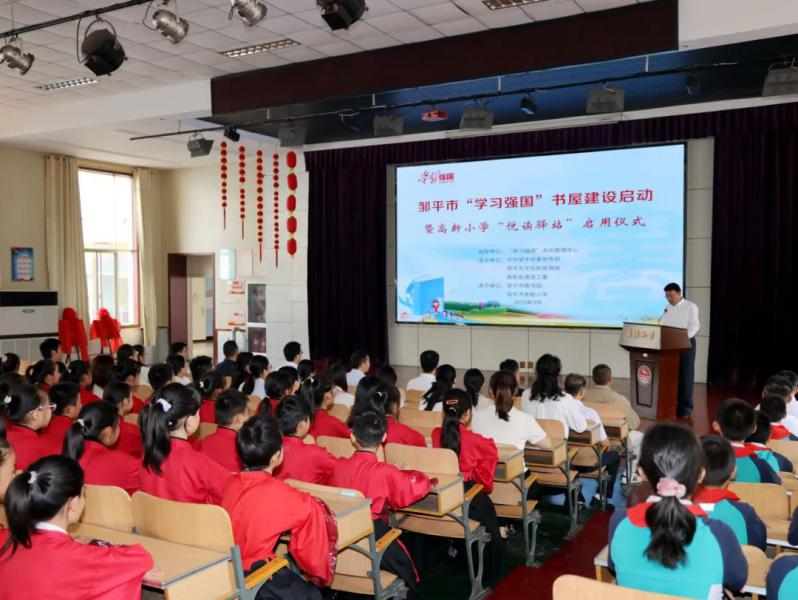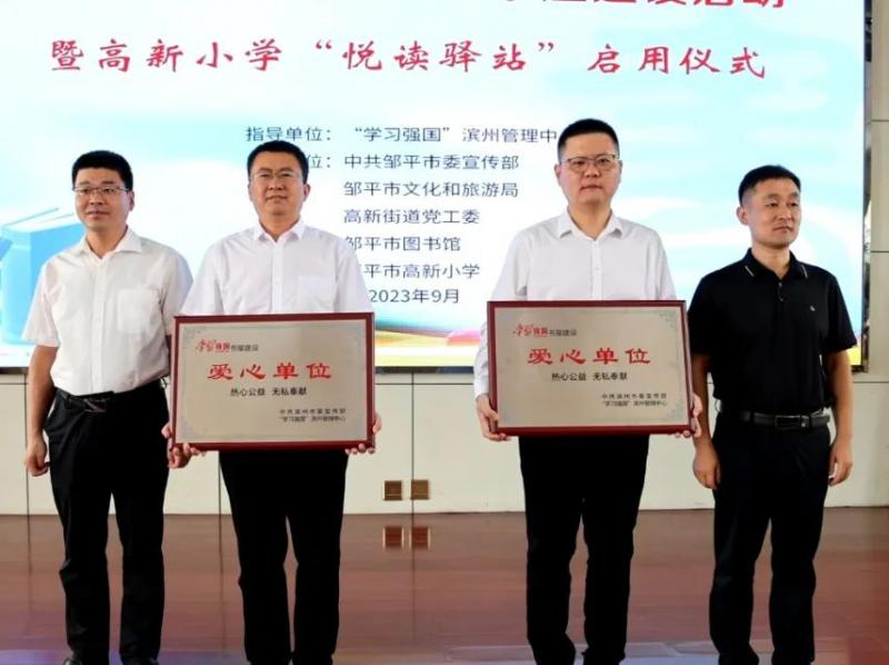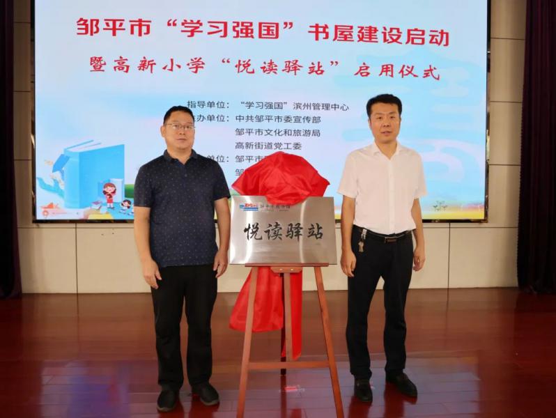 9月26日,邹平市“学习强国”书屋建设启动暨高新小学“悦读驿站”启用仪式在高新街道成功举办,中共滨州市委讲师团副团长、“学习强国”滨州管理中心负责人王其槐,邹平市委常委、宣传部部长郝凯军出席仪式。邹平经济技术开发区党工委委员、管委会副主任、高新街道党工委书记王建伟,邹平市委宣传部分管日常工作的副部长李伟,邹平市文化和旅游局党组书记张绍鹏,邹平市委宣传部副部长高雷,邹平市教育和体育局党组成员张经远,邹平市文化和旅游局党组成员、市图书馆馆长李国英,街道党工委副书记韩志国,各镇(街道)党(工)委宣传委员,高新小学、爱心单位负责人参加仪式。