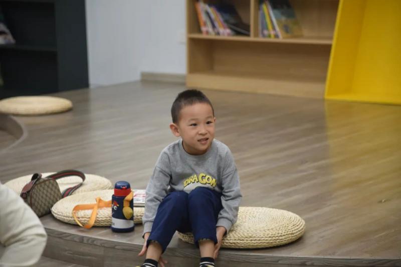 周老师带领着孩子们一起阅读小猪“变长颈鹿”“变斑马”“变大象”的情节,引导孩子们发现这几个情节的相似之处:小猪想办法变成这种动物——向另一种动物炫耀反被嘲笑——以失败告终;然后引导孩子们通过“边读边猜想”的方法去猜想后面的故事情节,启发孩子们发散思维,发挥想象力,周老师还进行了简单的提问,“小猪模仿了哪些动物?有哪些感受?小猪为什么不快乐?”等,孩子们认真地思考问题后,个个都举起了小手,现场气氛十分活跃,周老师也为互动的孩子们送去了可爱的小贴画,绘本馆里读书声、掌声此起彼伏。