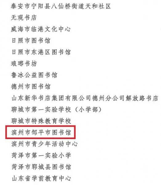 喜报!邹平市图书馆荣获山东省“全民阅读示范基地”称号!