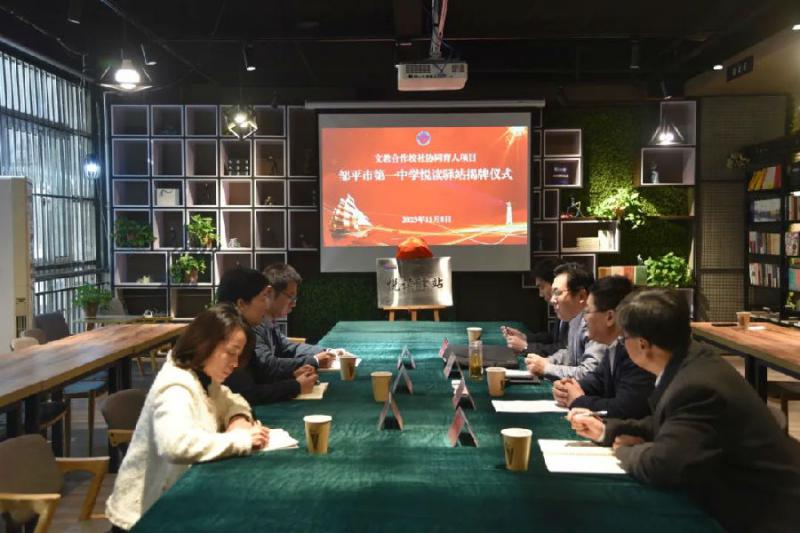 邹平市教育和体育局党组成员、教研室主任刘德全,邹平市文化和旅游局党组成员、市图书馆馆长李国英,邹平市第一中学党总支书记、校长刘新成出席揭牌仪式并参加悦读驿站座谈会。