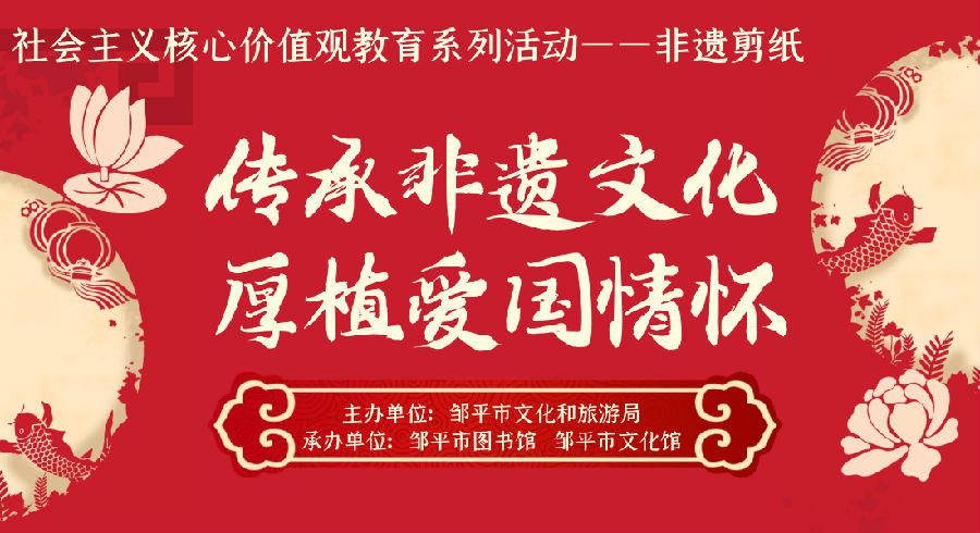邹平剪纸是邹平农村历史悠久且流行很广的一种民间艺术形式,以古齐东县的繁荣为依托,以黄河岸边农村农民生活、民风民俗和常见的花鸟鱼虫、龙凤福寿吉祥物等为题材,纹样生动有趣,拙雅浪漫,广泛应用于窗花、墙花和装饰底样,通过剪纸的形式无拘无束的表达出,对生活的所见所闻和对美好生活的愿望。