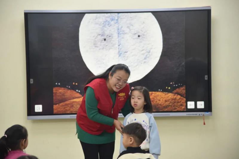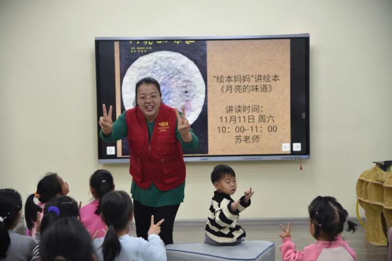 11月11日,绘本妈妈苏老师与孩子们一起“咔嚓、咔嚓”,品尝月亮的味道。