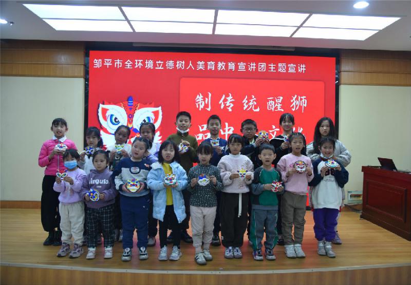 狮头、眼睛、耳朵、鼻子、嘴巴、胡须、小装饰……逐一将醒狮部位固定在木片上。慢慢地,每个孩子们心中独一无二、或灵动可爱、或“威武霸气”的醒狮形象就呈现在大家眼前。
