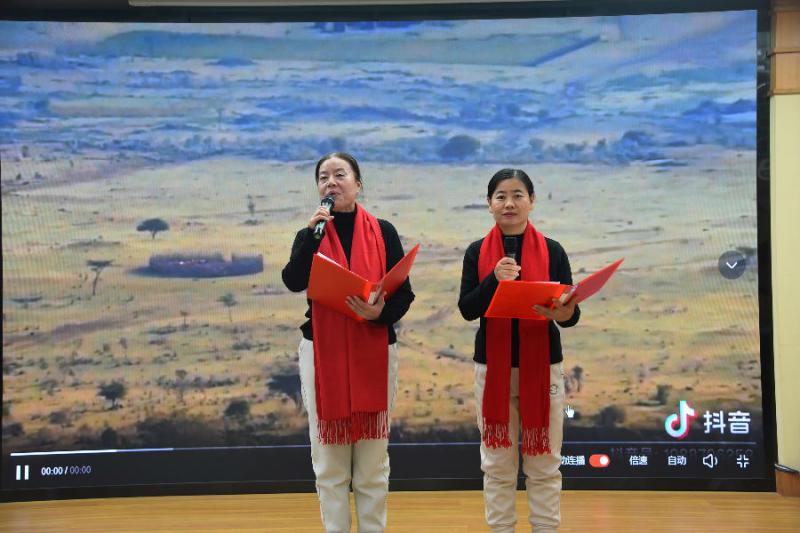 朗诵会在7人齐诵《卜算子·咏梅》、《沁园春·雪》逐渐进入高潮。《心之力》节选、《清平乐·六盘山》、《水调歌头·游泳》、《为人民服务》,一首首脍炙人口的诗词,带着大家走进革命故事,在豪放的风格、磅礴的气势、深远的意境之中,领略伟人诗词所蕴含的崇高革命思想、遒劲创造力量、壮阔艺术情怀和永恒精神财富。