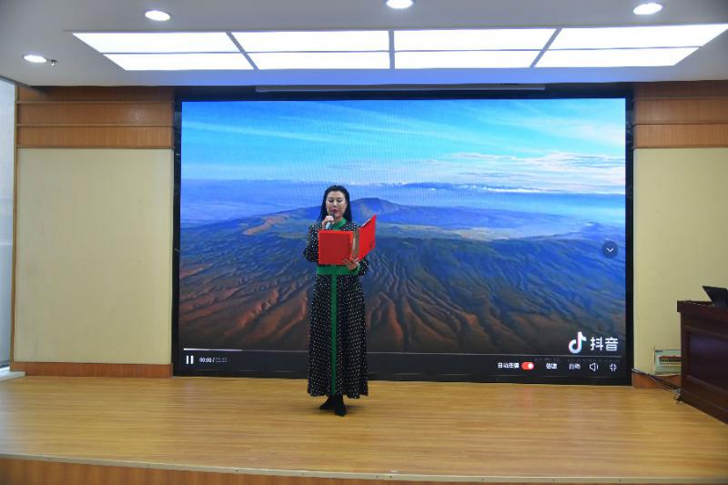 凛冬寒意,图书馆报告厅暖流涌动。朗诵会以“永不褪色的红色经典”为主题,以连诵《忆秦娥·娄山关》、《七律·长征》拉开了序幕,鲜红的背景、激昂的音乐,诗词里艰苦卓绝的革命历程、如火如荼的峥嵘岁月,让大家又回到了那个战火纷飞的年代,又看到了那位指点江山、激扬文字的伟人。