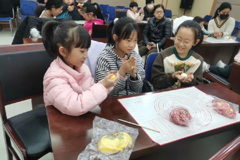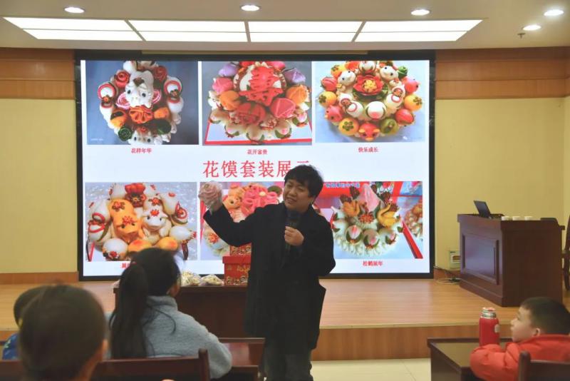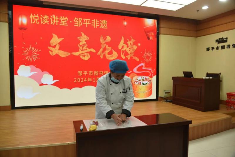 1月21日,图书馆组织开展“悦读讲堂”邹平非遗系列(四)——文喜花馍讲座,与面点师傅们一起巧手“打造”健康花馍,素心传递美好祝福。
