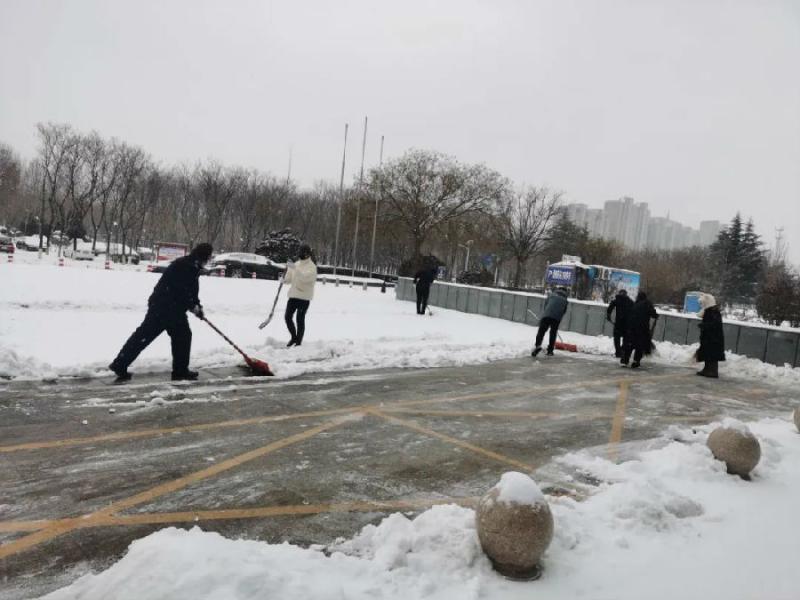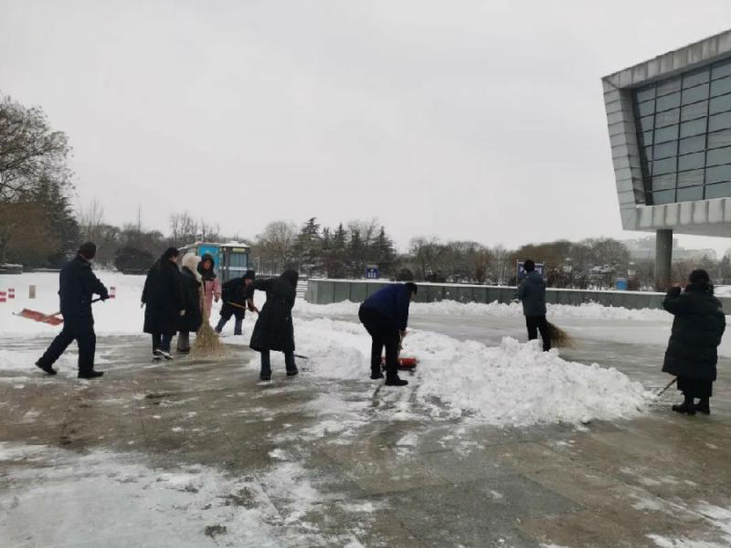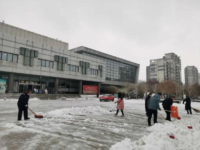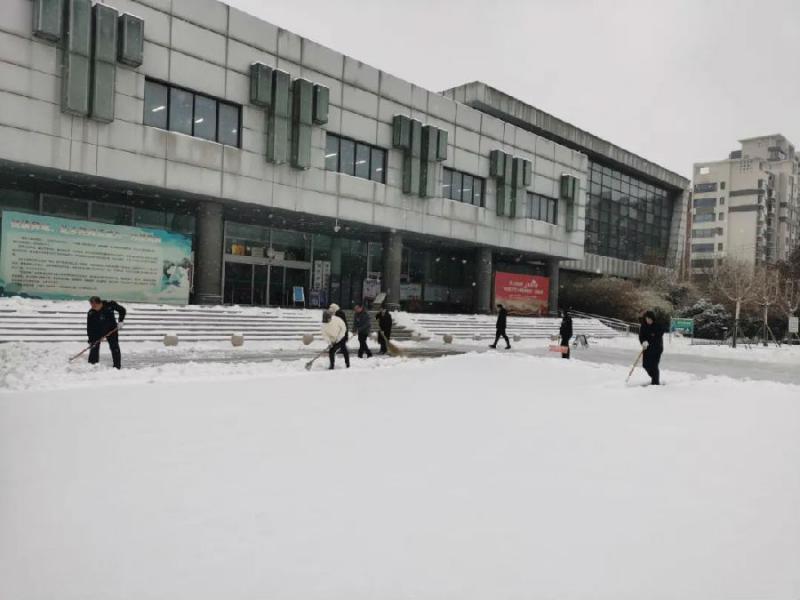 经过近2个小时的团结协作,大家清理出了人行道、盲道、停车区等重点区域,为广大读者提供了便捷的出行通道,避免了积雪结冰带来的安全隐患,最大限度保障了读者的求知路安全顺畅。