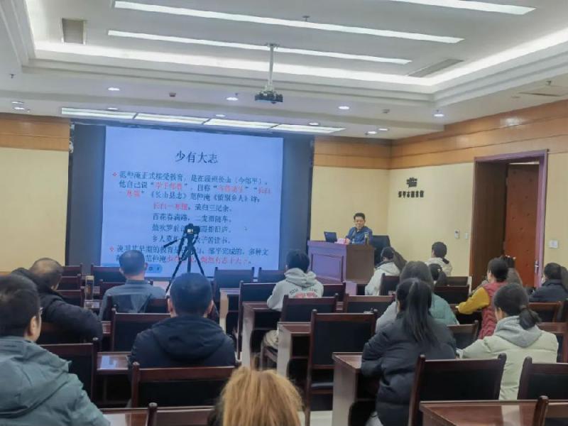 2月25日上午,图书馆“悦读讲堂”邹平历史文化名人系列讲座——范仲淹(二)开讲,讲座邀请到山东省语言学会会员,中国范仲淹研究会常务理事王忠修为大家授课。