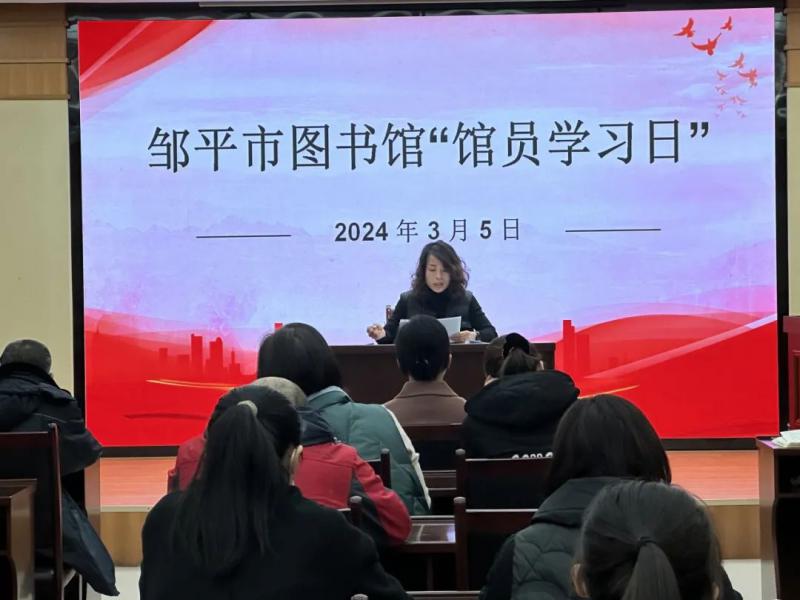 邹平市图书馆把2024年确定为“开放深化提升年”,通过“馆员学习日”集中学习,旨在加强馆员理论素养,强化服务意识,提高业务综合能力,从而进一步发挥基层公共图书馆阵地引导作用。