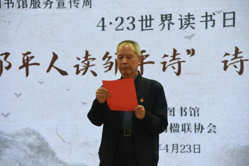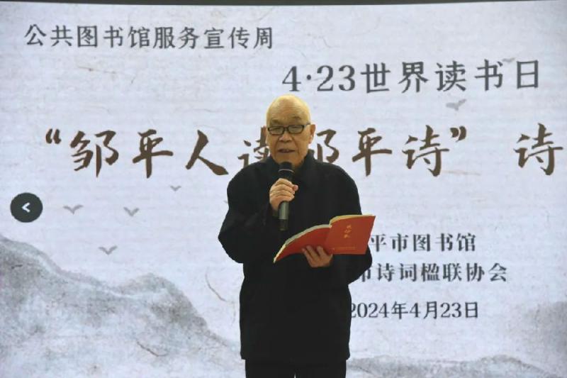 4月23日,在第29个世界读书日到来之际,为推动全民阅读,激发阅读热情,展现邹平的山水风光、厚重的历史文化底蕴,“邹平人读邹平诗”诗歌诵读会在图书馆报告厅举行。市文化和旅游局党组成员、市图书馆馆长李国英,邹平市诗词楹联协会名誉主席、原鲁中职业学院高级教师王忠修,市诗词协会主席张山峰,副主席成若刚、赵梅红、曲百万、成涛峰参加活动。