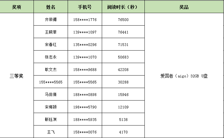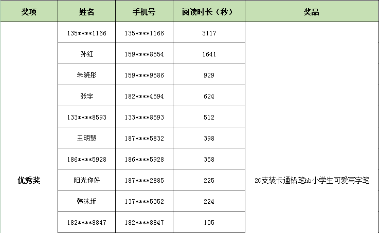 活动期间,广大读者积极参与,根据活动规则,现将获奖名单公布如下,领奖时间将另行通知。