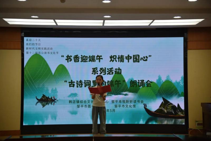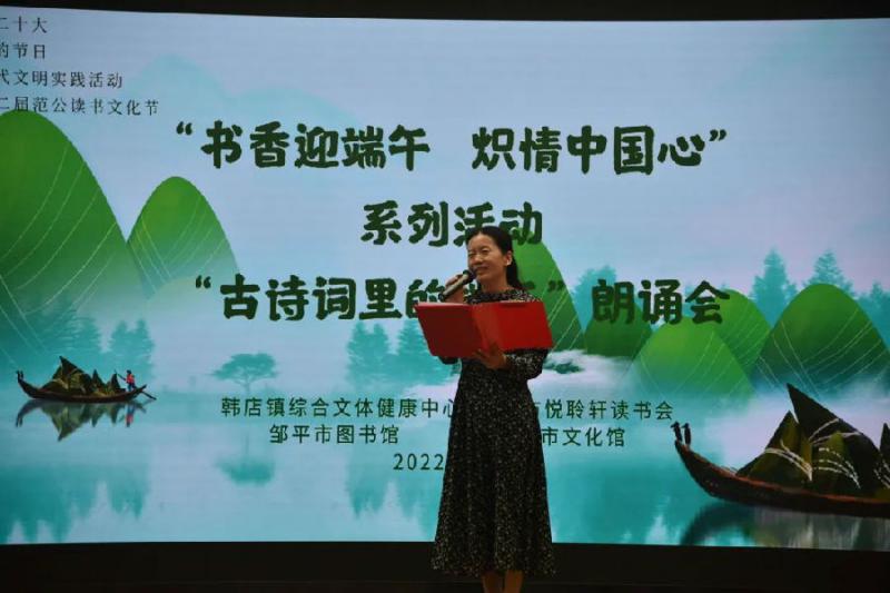 品味端午诗词,感受端午节的深厚历史。5月28日下午,邹平市图书馆在学术报告厅开展“书香迎端午炽情中国心”系列活动之“古诗词里的端午”朗诵会。大家饱含深情的诵读营造出浓厚的节日氛围。通过诵读经典诗词,带领大家感受传统文化的内涵之美,共同领略中国人历史长河里的诗心活力。