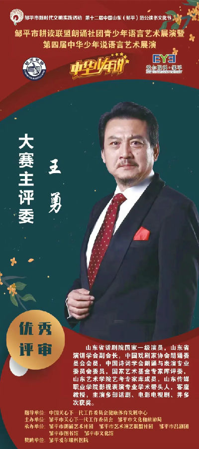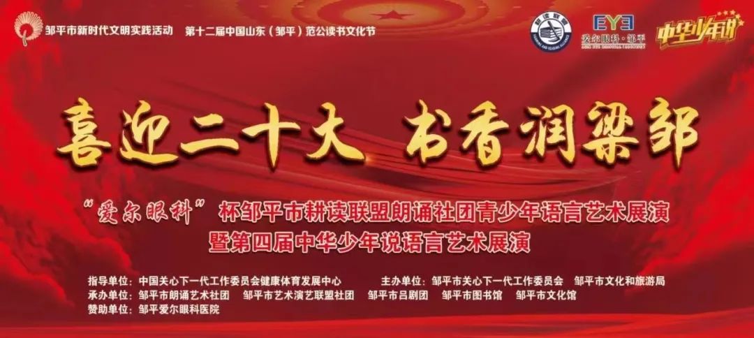 由邹平市关心下一代工作委员会、邹平市文化和旅游局主办的“喜迎二十大 书香润梁邹”耕读联盟朗诵社团青少年语言艺术展演暨中华少年说语言艺术展演决赛开幕式将于7月26日上午9:00在文化中心二楼剧场举行。前期经过初赛,共有367名选手进入决赛。本次比赛将继续选拔更优秀的选手参加中华少年说山东赛区的比赛。