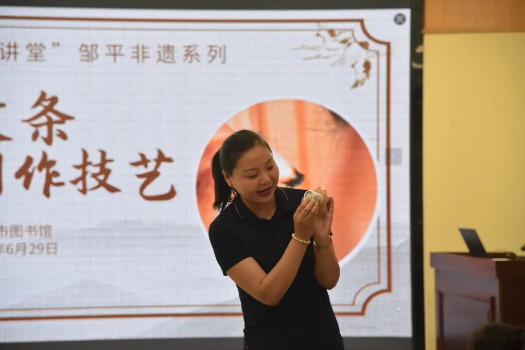 传承非物质文化遗产,弘扬中医养生智慧,6月29日,图书馆组织开展“悦读讲堂”邹平非遗系列讲座——张氏艾条制作技艺,讲座围绕“非遗技艺+中医养生”,融合健康科普与文化体验,与广大读者朋友们一起在夏日感受邹平非遗的魅力。