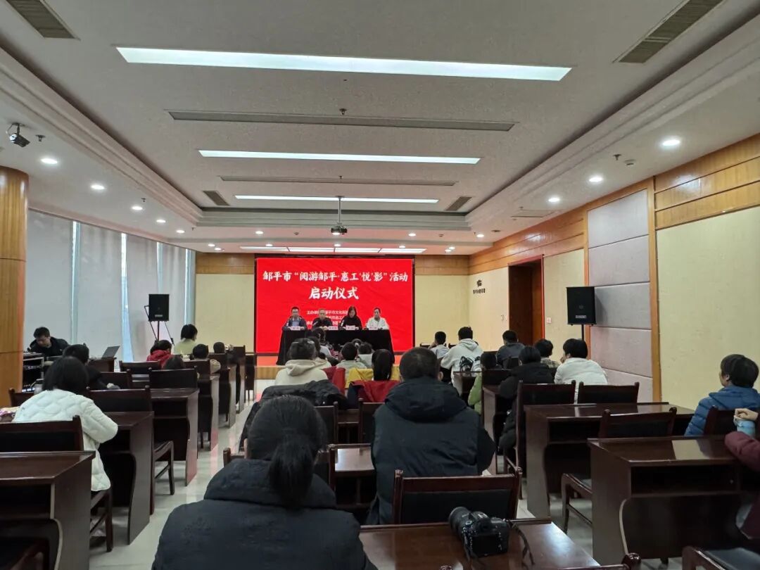 12月20日,由邹平市文化和旅游局、邹平市总工会主办,邹平市图书馆承办的“阅游邹平·惠工‘悦’影”活动启动仪式在图书馆举行,旨在深入贯彻落实文化惠民政策,通过常态化电影放映活动,丰富我市广大职工群众精神文化生活,提升广大职工群众生活品质。邹平市文化和旅游局党组成员、副局长李晓,邹平市总工会党组成员、副主席夏应东,邹平市图书馆党支部书记、副馆长崔凯,邹平市图书馆副馆长薛静参加活动。